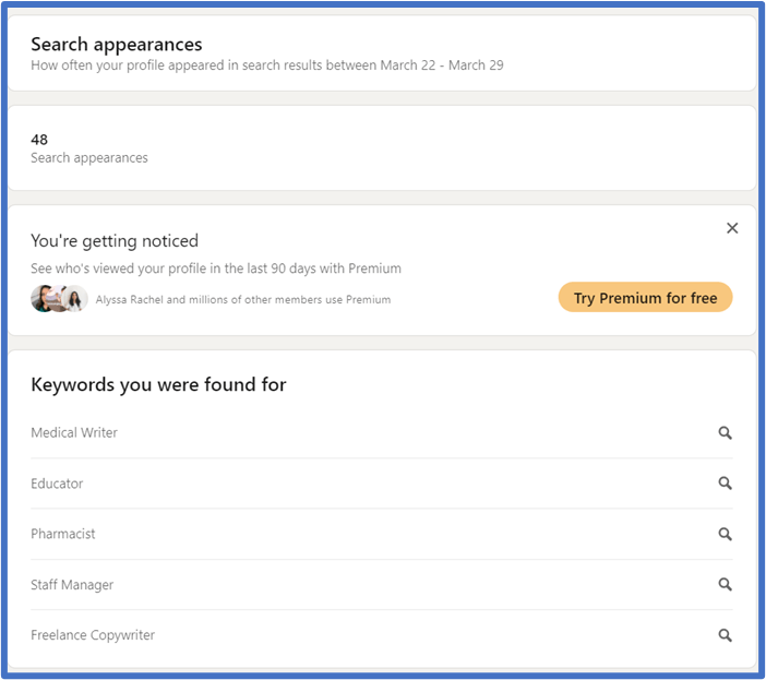 - You start to get a lot of profile views, which means the keywords you are using are helping you turn up on search results.