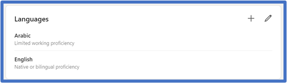 - Include the languages you can speak, and the level you can speak them at in the “Languages” section.