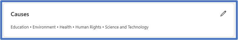 - Fill in the causes you care about at the very bottom of your profile.
